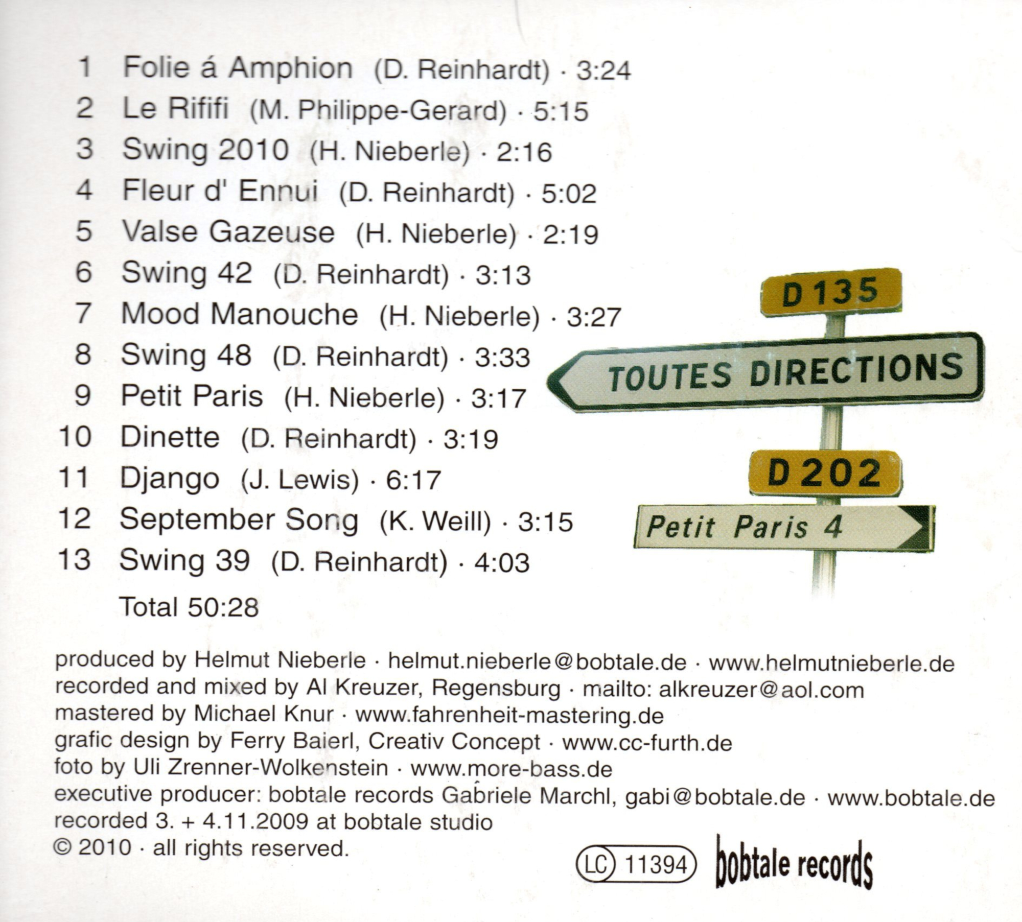 Helmut Nieberle und Cordes Sauvages zelebrieren Djangos 100. Geburtstag mit Verve, Esprit und jeder Menge Reminiszenzen an charmante Dorffeste unter französischer Sommersonne. Ein Ambiente, das Djangos Spiel- und Lebensart nahe kommt. Man weiß ja, dass er gern auch mal ein Konzert in den größten Hallen dieser Welt hat sausen lassen, um im Bistro um die Ecke mit seinen Kumpanen nach Herzenslust zu jammen.
