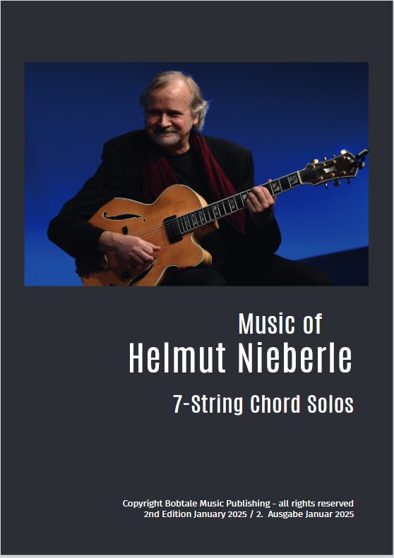 Ein Notenbuch mit 19 ausgewählten Kompositionen des Jazzgitarristen Helmut Nieberle (22.06.1956 - 09.02.2020) gesetzt und arrangiert von Thomas Harrer für 7-string Solo Guitar, Noten- und Tabulatursatz, 42 Seiten, Spiralbindung. Exklusiv zu bestellen bei BOBTALE MUSIC PUBLISHING zum Preis € 19,80 + Versandkosten € 3,00.